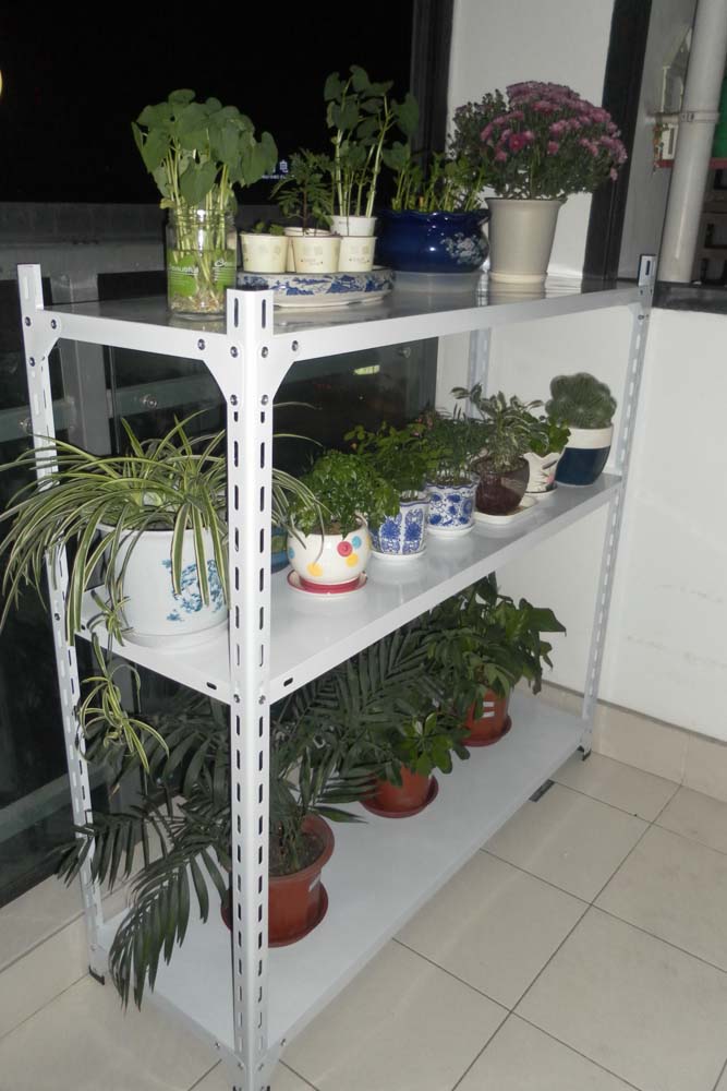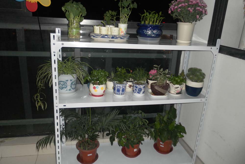 封闭阳台朝向不好,最近已经下了N多天的雨 了,喜阴植物也快闷坏了,没办法今天下午整了个货架,将就吧,可怜我头顶的升降衣架不好摇下来了,架子挡到了。
