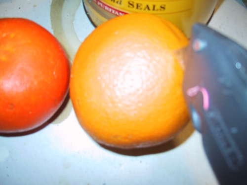 ● 转动并挤压橙子,直到感觉它们变得柔软,直到橙子里面的酸甜汁液鲜活得像要溢出来o(≧v≦)o~~(唾液腺是不是忽然活跃起来了!)。